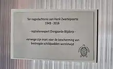 Zwartepoorte was born on 4 September 1949 in Rotterdam.[1] In the 1970s Zwartepoorte started working as a zookeeper at Blijdorp.[2][3] After he started working in the reptiles department he became interested in turtles. Shortly afterwards he joined the Nederlands-Belgische Schildpadden Vereniging and subsequently became chairman. Zwartepoorte became known as one of the pioneers in the Dutch reptile scene, owning and breeding turtles, and in 2008 owned around 90 turtles.[4][5] At Blijdorp Zwartepoorte set up large breeding facilities for endangered species.[3] For one of the species being bred, the Cuvier's dwarf caiman, Zwartepoorte would quack to hatchlings still in the egg, indicating it was safe to emerge.[6] In 2011 he managed to breed Komodo dragons at the zoo.[7] As his last position in Blijdorp he was curator of reptiles and amphibians.[8] After a critically endangered Kemp's ridley sea turtle beached in Westenschouwen in 2009, the turtle was nursed back to health in Blijdorp. Zwartepoorte and others wrote an article on the happening.[9] Zwartepoorte retired from Blijdorp in 2014. In 2015, the breeding facilities he helped set up at Blijdorp, were closed in a reorganisation. Zwartepoorte then founded the Stichting ReHerp, a foundation for the breeding of highly endangered reptiles.[8][3]