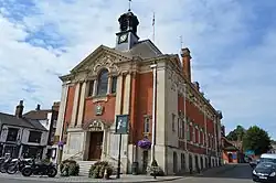 In the late 19th century, after the previous town hall was deemed too small, civic leaders decided to demolish it and build a fourth structure on the same site as the third one, as a lasting memorial to Queen Victoria's Diamond Jubilee.[2] The new building was designed by Henry Hare in the Baroque style, built in red brick with stone dressings by Messrs. McCarthy E. Fitt of Reading at a cost of £5,895 and was officially opened by the local member of parliament, Robert Hermon-Hodge, on 13 March 1901.[7][8]