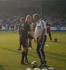 Following his retirement in 1977, Hennie Spijkerman became the assistant manager for the Go Ahead Eagles, assisting Joop Brand, Jan Versleijen and Nico van Zoghel, before accepting a position as manager for Rohda Raalte in 1994, by which time he had been active with Go Ahead Eagles for 25 years both as a player and coach. Two years later he became the manager of SV Urk, a position he filled for two seasons before taking over as manager of VVV-Venlo.[5] In 2000 Spijkerman left Venlo to become the new manager of FC Emmen, managing them for three years before moving back to the club where it all started FC Zwolle on 8 October 2003.[6] Managing Zwolle for three seasons, Spijkerman left the club following disputes and differences with a supporters group, taking a position as assistant manager to Henk ten Cate at AFC Ajax in Amsterdam. Spijkerman then remained the assistant manager at the club under Adrie Koster following the departure of Henk ten Cate, he however then took a scouting position with the club following the arrival of Marco van Basten as the new manager at Ajax.[7][8] In 2010 Hennie Spijkerman took over as the new manager of HFC Haarlem a partner club of Ajax, Haarlem however filed for bankruptcy that same year, upon which Hennie Spijkerman filled a vacancy as technical director at Ajax Cape Town, Ajax' satellite club in South Africa.[9] In 2011 Hennie Spijkerman resumed his position as assistant manager for Ajax Amsterdam under newly appointed manager Frank de Boer. The club went on to win four consecutive national titles under the new management.[10] He and fellow assistant Dennis Bergkamp were sacked from their roles in December 2017.[11] Since 2018 Hennie Spijkerman is employed by FC Groningen as an assistant to head coach and former FC Groningen player Danny Buijs.