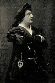 After Antwerp, Albers was engaged as Principal Baritone at the Opéra de Bordeaux and went on to sing at the Royal Opera House in London and the Opéra de Monte-Carlo. He was engaged by the Metropolitan Opera in 1898 and sang with the company both on tour and in New York City. He made his company debut on 8 November 1898 as Mercutio in the Met's touring performance of Roméo et Juliette in Chicago. He remained with the company through 1899, appearing 36 times in eight different operas and tackling his first Wagnerian role, Wolfram in Tannhäuser.[5] On his return to Europe he sang regularly at the Théâtre de la Monnaie in Brussels from 1901 to 1906 and added several more Wagnerian roles to his repertoire: Telramund in Lohengrin; Hans Sachs in Die Meistersinger von Nürnberg; Wotan in Das Rheingold, Siegfried, and Die Walküre; and Kurwenal in Tristan und Isolde. A highly versatile singer, he also appeared in the title roles of La Monnaie's productions of Hamlet, Rigoletto, Hérodiade, and Le roi Arthus, as well as singing Count di Luna in Il trovatore, Iago in Otello, and Baron Scarpia in Tosca.[6]