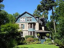 This historic district includes notable examples of the Colonial Revival, Tudor Revival, and Queen Anne styles, which are characterized by first stories made from stone, wood frame upper stories, and wooden porches.[2]