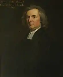 Aldrich was educated at Westminster School under Dr Richard Busby. In 1662, he entered Christ Church, Oxford, and in 1689 was made Dean in succession to the Roman Catholic John Massey, who had fled to the Continent.[1][2] In 1692, he became Vice-Chancellor of the University of Oxford until 1695.[3] In 1702, he was appointed Rector of Wem in Shropshire, but continued to reside at Oxford, where he died on 14 December 1710.[4] He was buried in Christ Church Cathedral without any memorial, at his own request.[5] However, a medallion portrait memorial was erected to his memory in 1732 in Oxford Cathedral sculpted by Henry Cheere.[6]