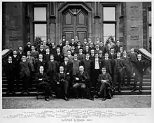 In 1909 he succeeded Professor John Chiene as Professor of Systematic Surgery. In 1910 he was elected a member of the Aesculapian Club.[6] In August 1914 he began additionally working at the 2nd Scottish General Hospital at Craigleith in west Edinburgh, operating on the wounded troops returning from the First World War. In 1915 he took leave of absence from his professorship to undertake what he saw as the more pressing issue of surgery on the western front, such as to treat the wounded as soon after injury as possible. He was given the rank of Colonel in this role. Here he worked directly with the 3rd Army of the British Expeditionary Force in northern France. He contracted trench fever and was invalided home in 1916. He never fully recovered. He was awarded a Companion of the Order of St Michael and St George (CMG) for his war work.[7]
