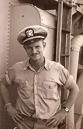 Following two weeks of exercises in Hawaiian waters, the Duncan arrived in Yokosuka on 30 August 1955. While in Japan those officers on the Duncan whose service obligation ended with the Korean War went home. The ship went from twenty-two officers to eleven. Mustin found himself now the second officer in the Engineering Department. In the meantime, Mustin also was continuing to learn. Later the next year while in San Diego, the chief engineer left, leaving him as department head. He came to rely heavily on a Chief Blazewski, a thirty-two-year veteran who "had a row of hash marks that were running up his arm."[1] He took Mustin under his wing, and trained him to ensure that they could run the department without too much meddling from above. Blazewski's style illustrated how the chief petty officers could hold a ship together, Mustin observed. "You had this wardroom all of a sudden losing all of the experienced officers with very junior officer replacements, like me. And this sort of half-mutinous gang of draftees and other guys who couldn't wait to get out. It was a difficult time, and the chiefs made it all work."[1]