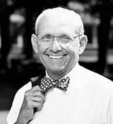While working at Icore Riggs began to teach part-time at Stanford and joined the faculty full time in 1974. He was the Thomas Ford Professor of Engineering Management. From 1978 to 1983 he was chair of the Stanford Industrial Engineering and Engineering Management Department. One of Riggs' key courses at Stanford was Industrial Accounting (IE 133; now IE 140), which covered principles of financial and cost accounting.[3] He was a dedicated teacher, and in 1979 was awarded the Tau Beta Pi Award for Excellence in Undergraduate Engineering Teaching, and in 1980 he received Stanford's highest award for excellence in teaching: the Walter J. Gores Faculty Achievement Award.[4] Riggs commonly used case studies in his teaching, and as he biked through campus to class, he cut quite a figure in his suit and signature bow-tie. He continued to teach while taking on academic leadership roles (below). Following his retirement from KGI, he returned to Stanford as Emeritus Professor and continued to teach there from 2004 until 2015. Most recently he led "The Art and Logic of Fundraising" course offered by the Stanford Continuing Studies program (BUS 104).