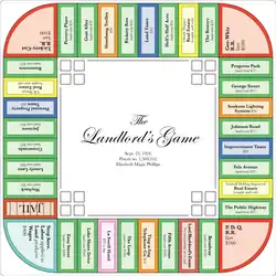 Non-political means have also been attempted to further the cause. A number of "Single Tax Colonies" were started, such as Arden, Delaware and Fairhope, Alabama. In 1904, Lizzie Magie created a board game called The Landlord's Game to demonstrate George's theories. This was later turned into the popular board game Monopoly.