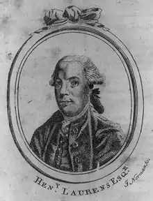 1784 engraving of Laurens as President of the Continental Congress