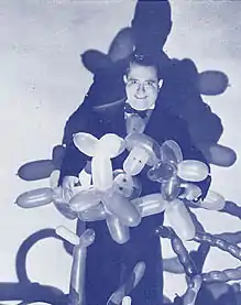 According to Joseph Maar, his father had pleurisy as a child and spent several years at a TB Sanitorium in Milwaukee. To develop his lungs, the facility had Henry blow up balloons. In the 1930s Henry became a vaudeville magician. While preparing for a show in 1938 or 1939, Joseph writes, "he came back to the car to get the rest of his magic tricks only to find the vehicle had been broken into and everything was gone."[1] With his magic tricks stolen, Maar went on stage and performed a show consisting primarily of balloon twisting. "Afterward, the agents went nuts and told him to forget the magic and to start doing the balloons. That [Henry Maar's agents said]'everyone's doing regular magic tricks but no one is doing the balloon tricks.'"[1]