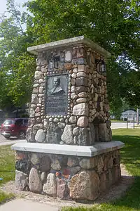 The annual Pattengill Reunion events continued after Pattengill's death. The committee which facilitated these events began to work to promoting Pattengill's legacy, by means such as placing his portrait in Gratiot County schools, and creating a state memorial in Pattengill's name.[33] On January 8, 1920, the Detroit Board of Education passed a resolution to build an elementary school named after Pattengill.[34] The school was opened on November 23, 1921.[35] In November 1921, the Michigan State Teachers' Association established high school scholarships in Pattengill's name.[36] In 1924, there was a cairn monument built and dedicated to Pattengill in Ithaca, on land that was once a school building where he taught. It was funded by his former students.[37] It was constructed with 510 stones from around the world. In 2010, it was registered as a Michigan State Historic Site, and a plaque commemorating Pattengill was erected in 2011.[38]