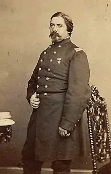 Lansing initially was assigned to the 12th New York Infantry Regiment as a captain.[4] He was then assigned to organize the 17th New York Infantry Regiment on May 29, 1861, for a two year term of service.[2][5] Lansing would fight at the Siege of Yorktown as well as the Seven Days Battles but was wounded during the latter and had to be taken to a hospital. On October 17, the 17th New York became part of the Army of the Potomac and Lansing was the commander of the 3rd Brigade of the 1st Division of the V Corps Briefly during 2nd Bull run.[6] Lansing would then participate at the battles of 2nd Bull Run, [2] Lansing was honorably discharged when his regiment was mustered out on June 2, 1863.[2]