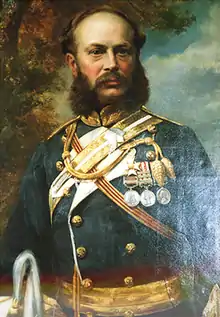 Educated at Rugby School,[4] Sarel became a cornet with the 9th Queen's Royal Lancers in 1847[5] and subsequently transferred to the 17th Lancers.[6] He fought with his Regiment during the Indian Mutiny in 1857[7] and then joined the China Expedition in 1861.[8] He was appointed Lieutenant Governor of Guernsey in 1883[9] and lived at Rollesby Hall in Norfolk.[10]