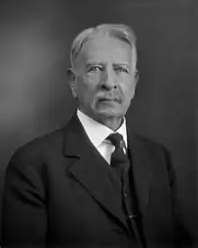 Upon his father's death, he won that seat in the Virginia Senate, and was repeatedly re-elected for a decade.[8][9] Wickham's particular concerns were for repayment of Virginia's prewar debt (then mostly held by foreign investors, but wealthy Virginians could buy coupons at a huge discount and use them at face value to pay Virginia taxes, which caused severe budget balance problems), especially for projects in what had become West Virginia. He became chairman of the powerful Virginia Senate Finance Committee before his speakership, and also advocated for pensions for Confederate veterans, and funding for Confederate memorials. While Wickham had accepted many policies of the Republican federal administrations following Reconstruction, as a Democrat, he also supported President Grover Cleveland, particularly on civil service reform and tariffs.[3]