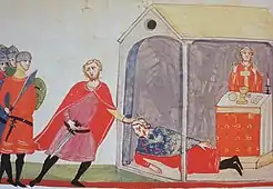 Henry of Almain (Anglo-Norman: Henri d'Almayne; 2 November 1235 – 13 March 1271), also called Henry of Cornwall, was the eldest son of Richard, Earl of Cornwall, afterwards King of the Romans, by his first wife Isabel Marshal.[2][3] His surname is derived from a vowel shift in pronunciation of d'Allemagne ("of Germany"); he was so called by the elites of England because of his father's status as the elected German King of Almayne.[4][5]