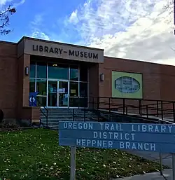 The Heppner Library-Museum is a joint public library and county museum located in Heppner, Oregon. The library is a branch of the Oregon Trail Library District and part of Oregon's Sage Library System. In 1958, Mrs. Amanda Duvall gifted the library to Heppner as a memorial to her husband and daughter. The City of Heppner donated the land upon which Duvall’s gift was constructed. The work was completed by the McCormack Construction Company of Pendleton and the Case Furniture Company of Heppner. The Heppner Library-Museum was dedicated in 1960 and remains an active and important anchor in the community.[1][2][3]