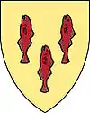 Or, three chabots haurient, with dorsaI fins sinister gules. | Canting arms, used by the Cabot family, assumed from the French Chabot family. |