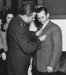 Hoover receives Octave Chanute award with a ceremonial pin in 1948