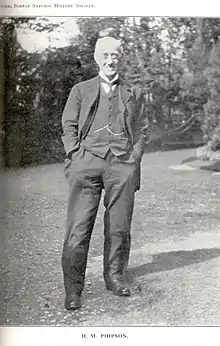 Herbert Musgrave Phipson (c. 1850 – 7 August 1936), was a British wine merchant and naturalist who lived in Bombay (now Mumbai), India, from 1878 to 1905. As the honorary secretary of the Bombay Natural History Society, editor of its Journal, and manager of the Society's business and outreach activities, he played an important role in establishing the journal's reputation as the foremost natural history journal in Asia; he also influenced public science policy in the Bombay Presidency.[1] His efforts saw fruition in the establishment of the Natural Sciences section of the Prince of Wales Museum of Western India. Phipson, who was married to the pioneering physician Edith Pechey-Phipson, co-founded, with his wife, the Pechey Phipson Sanitarium for Women and Children in Nasik, India.[1]