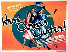 Here Comes Carter is a 1936 American comedy film directed by William Clemens and written by Roy Chanslor. The film stars Ross Alexander, Glenda Farrell and Anne Nagel. Last film produced by First National Pictures and released on October 24, 1936.[1][2] In Britain the film was released under the title "The Voice of Scandal". A radio commentator avenges an old wrong by blowing the whistle on Hollywood scandals.