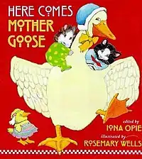 Here Comes Mother Goose is a children's picture book by Iona Opie. It is a collection of 56 Mother Goose nursery rhymes, chosen by Opie and is the second such collaboration between her and illustrator Rosemary Wells.