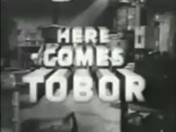Here Comes Tobor (1956) was a proposed American science-fiction television series, meant as a spin-off off the 1954 film Tobor the Great.[1] The 26-minute pilot was produced by Richard Goldstone for the 1956–1957 season, written by Arnold Belgard and directed by Duke Goldstone [2].[3] However, the project was not aired and only a pilot episode was filmed.[4]