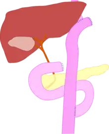 | Diagram demonstrating the end result of a total gastrectomy, the most common prophylactic treatment of HDGC. In the procedure the esophagus is directly connected to the small intestine. | |