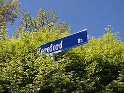 Hereford's well-landscaped Grounds include a nod to Jefferson's Lawn, though much steeper in slope as it climbs toward Observatory Hill. Students come from other residence halls, such as nearby Dillard House, to enjoy the open spaces of Hereford.[8] (View larger? 1024px 1280px 1600px 1920px)