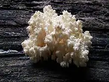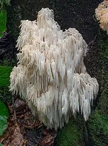 ![]() | Hericium erinaceus ("Bearded tooth", "tree hedgehog", "monkeyhead") | Found on living oak and beech trees.[16] | North America, Europe and Asia |