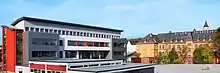 From 1972 to 1974, Müller was Stadtverordneter and president of the CDU fraction in Idstein. In 1974, he was elected mayor of Idstein, a town on the German Timber-Frame Road. He served for 24 years, reelected twice by the assembly, the third time in direct election by the citizens. During his tenure the framework houses of the old town were restored, villages improved, a pedestrian area installed, education improved and the Stadthalle built as a cultural centre.[1] He was responsible for bypass roads, new Kindertagesstätten and for restructuring business towards less production, more administration.[3] Müller won the Hochschule Fresenius to move their prime location to Idstein.[4] He attracted the festival week Hessentag to Idstein in 2002, which improved the infrastructure further.[3]