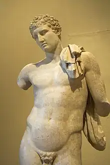 The statue, created around the first century BC,[3] or AD,[1] was one of the many copies of the original. That original statue was thought to have been a Lysippean type, but his sculptor belonged to the school of Praxiteles, as comparison with Hermes and the Infant Dionysus shows;[2] it was thus produced around 360 BC.[3]