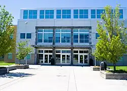 The main building is a seventy-classroom structure with computer laboratories, one large auditoriums, a library and physical education spaces. In 2016, three modulars were added to the layout in order to keep up with a rapidly increasing class size.[5] A new parking lot was opened on January 2, 2018.[6] The modulars were then removed and replaced with a parking lot and the new annex building was built during the summer and opened august 24th 2023 [7]