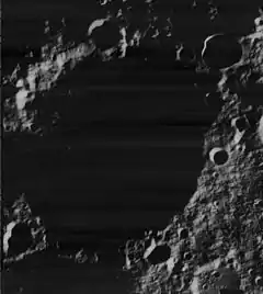 There may exist a large amount of water ice within Hermite A's permanently shadowed region (PSR), where no light from the sun ever reaches; according to a 2016 study published by the IEEE roughly two-thirds of the crater's PSR is covered with varying amounts of ice.[6] However, a 2018 study also published by the IEEE countered this claim, arguing that the method used to detect ice in the earlier study was not refined enough to conclusively identify a material as ice, and that more detailed methods were needed to determine if ice exists within Hermite A.[7] A further analysis of the crater in 2022 using data from the Chandrayaan-1 and Chandrayaan-2 lunar orbiters found that ice may exist in clusters on the walls and some parts of the floor of Hermite A.[8]