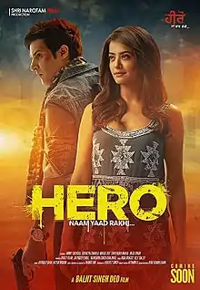 Hero Naam Yaad Rakhi is 2015 Punjabi romantic thriller[5] film with story screenplay and dialogues penned by Manoj Jha and directed by Baljit Singh Deo. The film as known is inspired by a real incident that happened in British Columbia.It is a 100minutes format movie. The film features Jimmy Sheirgill opposite Surveen Chawla in lead roles.[6][7]