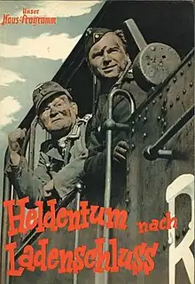 Heroism after Hours (German: Heldentum nach Ladenschluß) is a 1955 West German anthology comedy film directed by Wolfgang Becker, Erik Ode, Wolfgang Schleif and Fritz Stapenhorst and featuring an ensemble cast.[1] It is in four parts each portraying a different tale of German soldiers attempting to get home at the end of the Second World War. It was shot at the Wandsbek Studios in Hamburg and on location around West Berlin, Bavaria and the Rhineland. The film's sets were designed by the art directors Wilhelm Vorwerg and Hans Berthel. The production company made a documentary the same year that also celebrated the ordinary German soldier.[2]