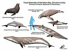 - ↑ Joseph J. El Adli, Thomas A. Deméré and Robert W. Boessenecker (2014). "Herpetocetus morrowi (Cetacea: Mysticeti), a new species of diminutive baleen whale from the Upper Pliocene (Piacenzian) of California, USA, with observations on the evolution and relationships of the Cetotheriidae" (PDF). Zoological Journal of the Linnean Society. 170 (2): 400–466. doi:10.1111/zoj.12108.