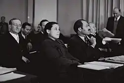 Herut MKs Uri Zvi Greenberg, Esther Raziel Naor, and Menachem Begin, at the first meeting of the Knesset in Jerusalem