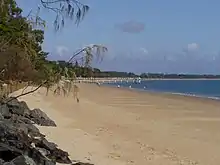 Hervey Bay (/ˈhɑːrvi/)[4] is a city on the coast of the Fraser Coast Region of Queensland, Australia.[5] The city is situated approximately 290 kilometres (180 mi) or 3½ hours' highway drive north of the state capital, Brisbane. It is located on the bay of the same name open to the Coral Sea between the Queensland mainland and nearby K'gari (formerly Fraser Island).[6] The local economy relies on tourism which is based primarily around whale watching in Platypus Bay to the north, ferry access to K'gari, accessible recreational fishing and boating and the natural north facing, calm beaches with wide undeveloped foreshore zones. In October 2019, Hervey Bay was named the First Whale Heritage Site in the world by the World Cetacean Alliance, for its commitment to and practices of sustainable whale and dolphin watching.[7] A 2010 study by Deakin University showed that people on the Fraser Coast area including Hervey Bay, were the happiest in Australia.[8] At June 2018, there were an estimated 54,674 people in Hervey Bay,[1] having grown by an annual average of 1.31% year-on-year over the preceding five years.[1]