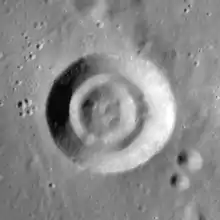![]() Lunar Orbiter 4 image, with Hesiodus A at lower left | |