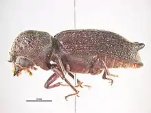 Heterobostrychus hamatipennis, the Chinese auger beetle, is a species of horned powder-post beetle in the family Bostrichidae. It is found in Africa, Europe and Northern Asia (excluding China), North America, and Southern Asia.[1][2][3]