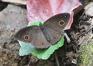 Heteropsis adolphei, the red-eye bushbrown,[1][4] is a species of satyrine butterfly found in southern India.[1][4] The species name is after Adolphe Delessert who collected the first specimens based on which the species was described.[5]