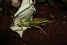 - ↑ Seiler, C.; Bradler, S. & Koch, R. (2000). Phasmiden – Pflege und Zucht von Gespenstschrecken, Stabschrecken und Wandelnden Blättern im Terrarium. bede, Ruhmannsfelden, ISBN 3-933646-89-8