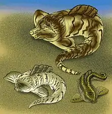 Heterosteidae (also known as Heterostiidae[1][2]) is an extinct family of moderately large to giant, flattened, benthic arthrodire placoderms with distinctive, flattened, triangular skulls that are extremely broad posteriorly, but become very narrow anteriorly.[3]