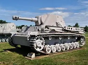 The Heuschrecke 10 (English: Grasshopper 10) was a German prototype self-propelled gun and Waffenträger (English: "Weapon carrier") developed by Krupp-Gruson between 1943 and 1944. The official designation of the vehicle was 105 mm leichte Feldhaubitze 18/1 L/28 auf Waffenträger Geschützwagen IVb (Pz. Sfl. IVb) and was to be built in Magdeburg, Germany. The Heuschrecke featured a removable turret which could be deployed as a pillbox or towed behind the vehicle as an artillery piece.