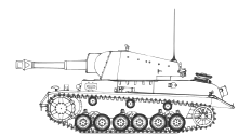 The Heuschrecke consisted of a welded steel hull, with thickness ranging from 10 to 25 millimeters,[2] and sloped armour to deflect incoming fire more effectively. It had a large ammunition stowage, making it one of the chosen ammunition-carriers to help alleviate losses of ammunition that could not otherwise be transported. The original prototype engine was the twelve-cylinder Maybach HL90, but for the production models, the twelve-cylinder Maybach HL100 was chosen.[2][8]