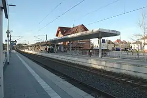 In the course of the development of the line for the S-Bahn, the track layout at the station was altered and the line was double-tracked and electrified. The station was rebuilt from 2001 to 2003 with two side platforms for S-Bahn operations that are barrier-free for the disabled. Previously the station had a main platform next to the entrance building and an island platform.