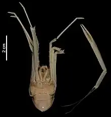 Hexamunida is a genus of squat lobsters in the family Munididae.[1][2][3] It was erected in 2022 when the then paraphyletic Agononida was divided into three lineages: Agononida sensu stricto and two new genera, Garymunida and Hexamunida. The genus name refers to the number of spines (six) along the anterior ridge of the second abdominal somite, whereas these spines number four in Agononida.[3]