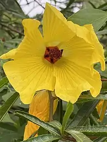 Hibiscus heterophyllus, commonly known as native rosella or toilet paper bush,[2] is a flowering plant in the family Malvaceae. It a shrub or small tree with white, pale pink or yellow flowers with a dark red centre and grows in New South Wales and Queensland.