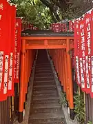 The shrine has escalators to help people climb up the tall hill it is located on. It also has a large series of Torii similar to those of Fushimi Inari Taisha[2]