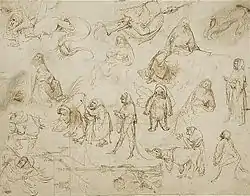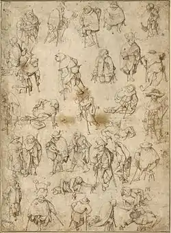 Beggars Type: Pen and bistre It is unknown whether this drawing is by Bosch or Pieter Brueghel the Elder. |