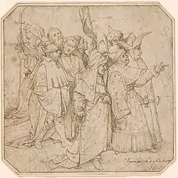 Beggars and Cripples Type: Pen and bistre Size: 264 x 198 mm Like the drawing Beggars, it is unknown whether this drawing is by Bosch or Pieter Brueghel the Elder. |