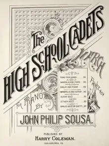 In 1888, John Philip Sousa composed The March Past of the National Fencibles, in honor of a renowned militia drill team[upper-alpha 1] affiliated with the National Guard of the District of Columbia.[upper-alpha 2] In 1890, the rival drill team of the Washington High School (subsequently Washington Central) asked Sousa, a native of the District, to compose a march for them, and he obliged with The High School Cadets March, now generally known simply as High School Cadets.[2] High School Cadets quickly became one of Sousa's most popular marches. Just four years after its composition, the Nebraska State Journal listed it as one of the composer's "most notable" marches, along with Washington Post March, Liberty Bell March, and several others.[3] It was recorded by Sousa's Grand Concert Band around 1899 and has been frequently recorded ever since (see Recordings).